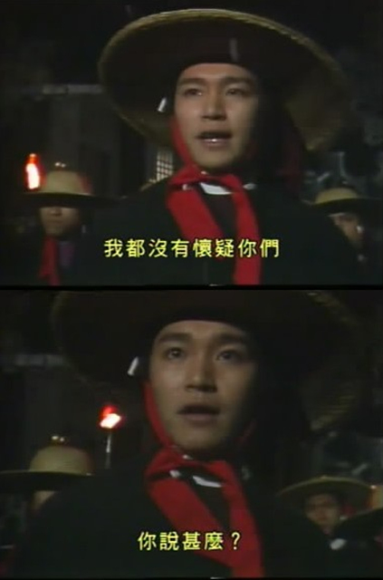 84年《射雕英雄传》,周星驰第一部“铁血丹心”的第一集中出场两次,一次在大街上追捕丘处机,遇到了郭啸天和杨铁心,有几句对白,搜刮了两人几两银子。第二次是去郭杨两家搜屋,又拿又抢,结果被郭杨二人杀死了。饰演杨铁心的就是谢贤,后来四哥在少林足球里露了一脸,感觉两人合作愉快,四哥对周星驰也极为欣赏,不知是否今次就有了香火之情­周星驰在第七集中又出场一次,演个被杨康送去给梅超风练功的囚犯,惨死在九阴白骨爪之下。