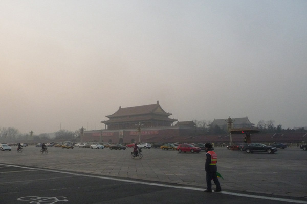 北京遭沙尘雾霾天 空气重度污染(1)(7)
