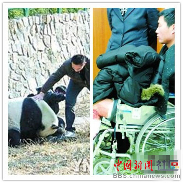 2009年1月7日12点55分,一名游客在北京动物园大熊猫馆游览时,突然跃入熊猫运动场,被大熊猫咬伤。3分钟后,伤者被值班饲养员救出。经医生诊断,伤者左小腿被咬伤,但没有伤到骨头。