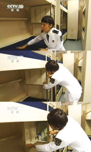 贴心的床灯,女舰员介绍在熄灯后,可以用这盏灯看书和写日记。
