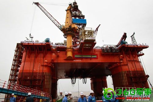 “海洋石油981”号自重超过3。1万吨,最大作业水深3050米,最大钻井深度12000米;甲板最大可变载荷达9000吨,面积相当一个标准足球场;从船底到钻井架顶高度达137。8米。(新华网图片)