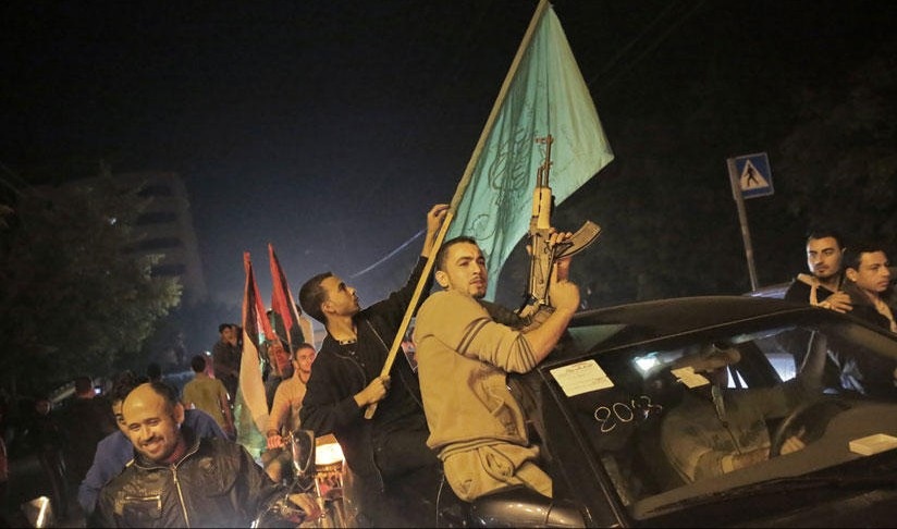 当晚,数万名巴勒斯坦人走上加沙街头,以向空中开枪、跳舞和汽车鸣笛的方式
