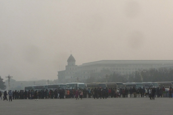 北京遭沙尘雾霾天 空气重度污染(1)(7)