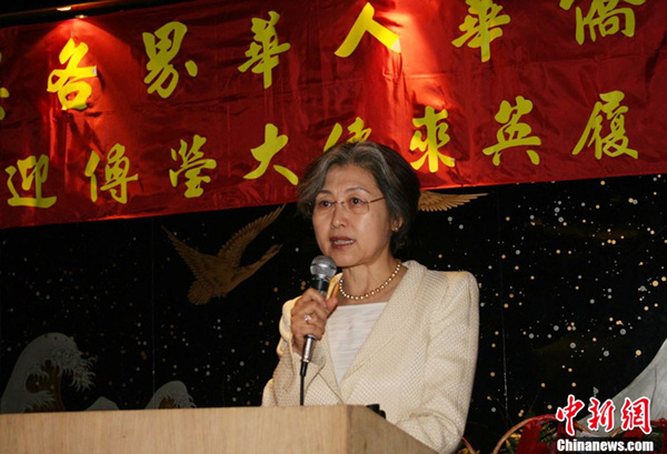 2007年4月23日,时任中国驻英大使的傅莹在英国华界的欢迎宴会致辞。