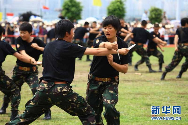 新华网香港消息:高墙攀登、擒拿格斗、飞车擒敌……28日,50名特战“霸王花”在驻香港部队军营开放日上首次精采亮相,令现场观摩的万余香港市民连声惊叹。如果不是有幸一睹她们的身手,恐怕谁也想不到这群曾经的骄娇女子居然个个身怀绝技。