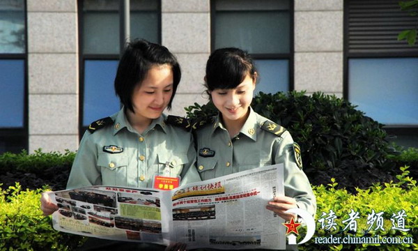 重庆警备区两个经常性工作能力培训士官培训连刚刚开训,有关姊妹花的故事早就在官兵 中传开了。姊妹花究竟有啥故事?笔者带着这些好奇,决定前去士官培训连里一探究竟。 一打听才知道这对姊妹花都身怀绝技:落落大方的曹明钰,2008年12月入伍,下士,重庆电视台军事节目《巴渝子弟兵》的主播,说得一口流利的普通话;笑 容可掬的叶莉,2009年从四川音乐学院本科毕业后入伍,精通歌舞。有了她们的加入,这期士官培训连可有了大看头!