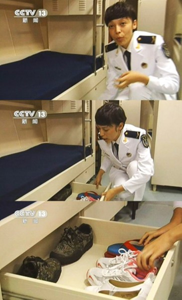 贴心的床灯,女舰员介绍在熄灯后,可以用这盏灯看书和写日记。